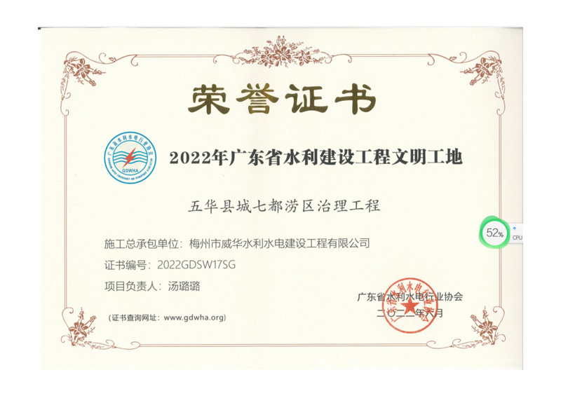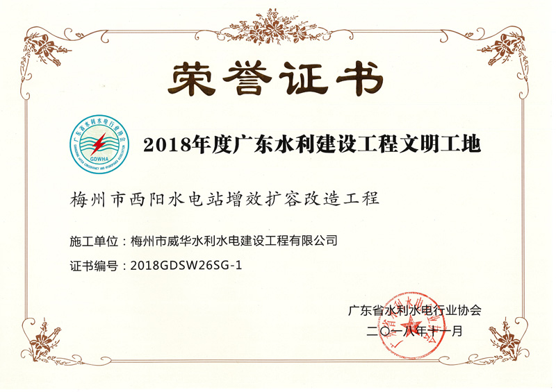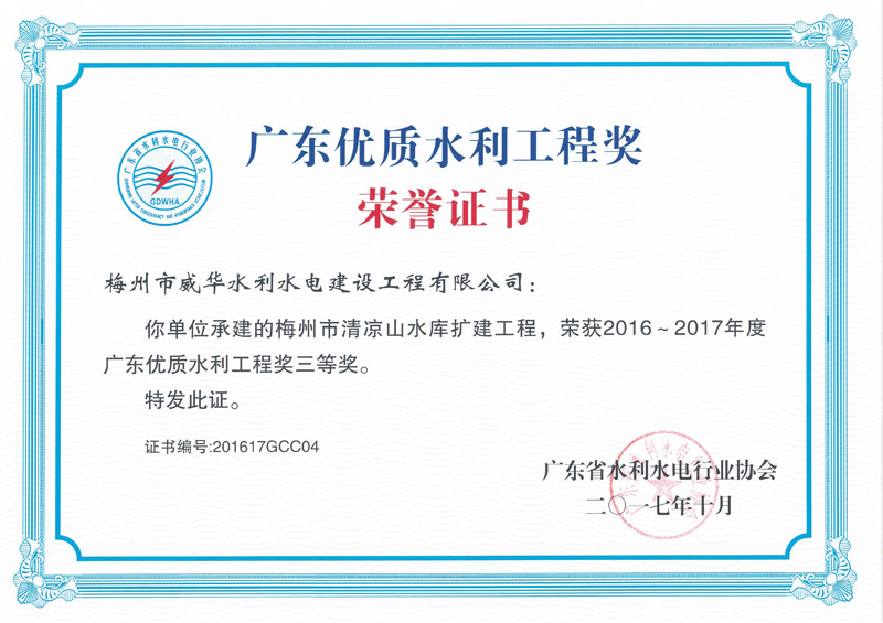 2017.10廣東省優(yōu)質(zhì)工程獎三等獎(清涼山水庫擴建工程) (廣東省水利水電行業(yè)協(xié)會)