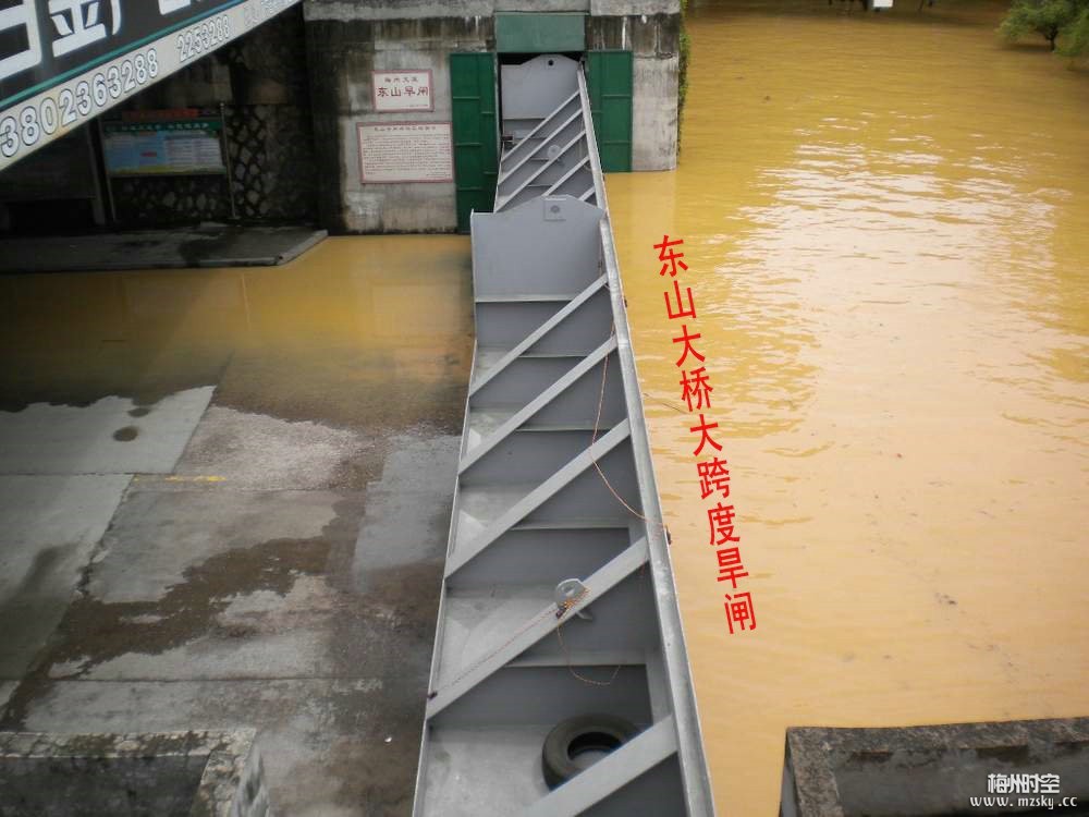 由我公司承建的東山旱閘是廣東省十大堤圍之一的梅州大堤北堤,為配合東山教育基地建設(shè)而興建的超大型旱閘工程,位于東山大橋引橋與江邊路交匯的橋孔處,為推拉式平板鋼閘門。東山旱閘寬22米,高3.7米,在我省同類閘門中是較大的,在全國(guó)也可數(shù)。經(jīng)過我市水利工程技術(shù)人員近一年的努力,攻克了多項(xiàng)關(guān)鍵技術(shù),多項(xiàng)指標(biāo)達(dá)到國(guó)內(nèi)水平。東山旱閘工程完工后可以進(jìn)一步完善江北城區(qū)防洪體系,滿足防洪需要;有利于把東山大橋以下沿江地段改造成親水公園。